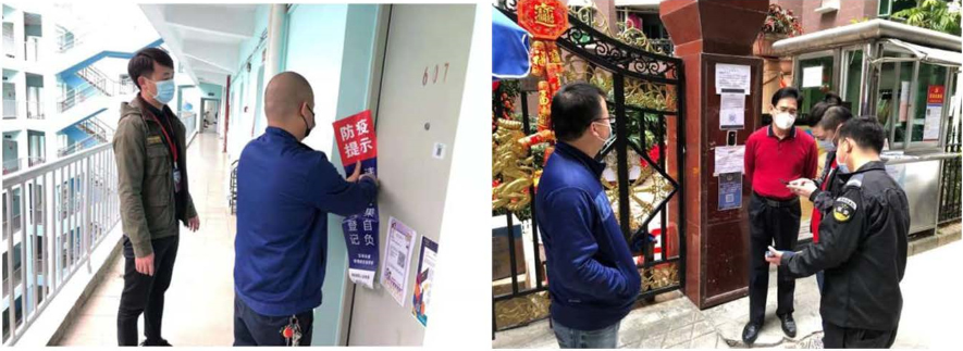 六是与政府、租户企业实现联动,信息互通,落实疫情报告制度,做好后勤保障工作。集团及所属公司与政府相关部门及企业沟通协调开工审批事宜,线上、线下为企业提供复工审批咨询及现场查验工作,对未能取得审批企业耐心做好安抚;严格落实岗位责任制,执行24小时值班和党员领导干部在岗带班制度,做好重大突发事件和紧急敏感情况的报告工作,并及时将有关工作要求转达一线员工;对于近期即将复工复产企业及人员密集的宿舍等重点区域,做好外出返程人员的信息登记、体温检测、室外卫生消毒等防护工作,东部公司支部针对摸底发现有园区企业湖北籍员工私自返深的情况,积极配合属地街道、社区及时召开现场办公会议部署相关防疫工作。