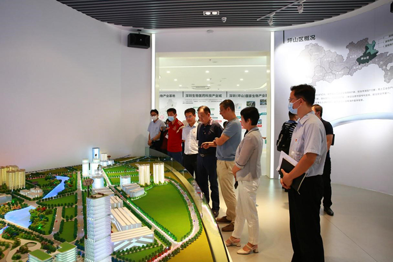 伍先铎主席一行来到生物医药创新产业园,在678体育集团所属东部公司相关负责人的陪同下参观了园区内的深圳国家生物产业基地展厅和党群服务中心,详细了解坪山生物医药产业发展成果、678体育集团产业园区开发运营及园区党建工作情况。