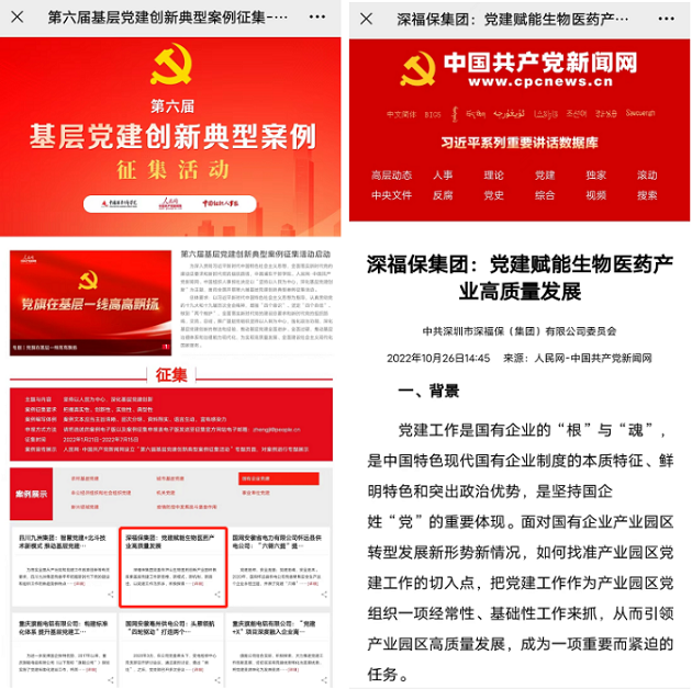 2022年,集团党建工作成绩斐然。在深圳市疫情防控的关键时刻,集团党委召集成立“党员先锋队”和“青年突击队”,派出党员志愿者56人支援福田区福保街道、沙头街道、南园街道及罗湖区东门街道、翠竹街道中高风险区半脱产或全脱产防疫,先后收到被支援街道发来的感谢信4封、锦旗2面。大力推进“党建+产业服务”工作,其成效先后被广东卫视、深圳卫视、《深圳特区报》专题报道;党建案例《党建赋能生物医药产业高质量发展》入选全国第六届基层党建创新典型案例并在人民网-中国共产党新闻网展示;“一企一品牌”成果《党建引领赋动能“四链融合”育产业》被录入投控党建品牌项目库;推动坪山生物医药产业创新链党委在所属坪山生物医药创新产业园挂牌成立,由集团党委委员担任副书记,所属东部公司当选为委员单位。