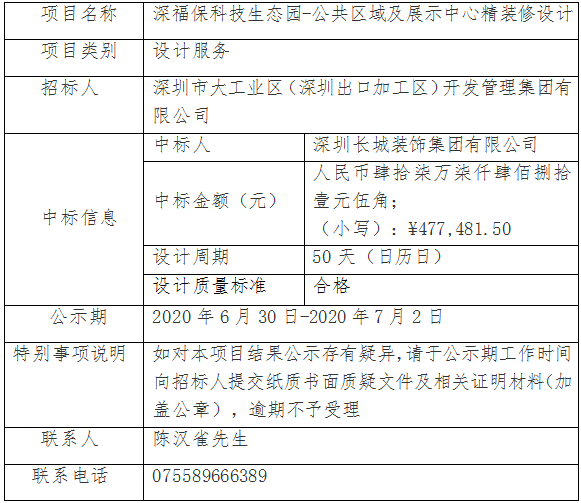 678体育科技生态园-公共区域及展示中心精装修设计(招标编号:DB-KJSTY-FW-30)已完成评审,现将本项目中标结果进行公示,具体内容如下: