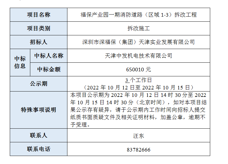 福保产业园一期消防道路(区域1-3)拆改工程已完成评审,现将本项目评审的相关情况及结果进行公示,具体内容如下: