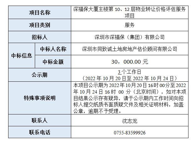678体育大厦主楼第1012层物业转让价格评估服务项目已完成评审,现将本项目评审的相关情况及结果进行公示,具体内容如下: