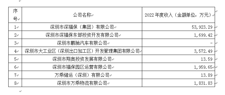 本项目包含集团范围内8家公司〔深圳市678体育(集团)限公司(含分公司)、深圳市万乘物流有限公司、深圳市万乘储运有限公司、深圳市园区运营有限公司、深圳市678体育东部投资开发有限公司、深圳市大工业区开发管理有限公司、深圳市鹏驰汽车有限公司、深圳市翔奥投资发展有限公司〕打包服务。2022年度各公司大概的收入情况如下表: