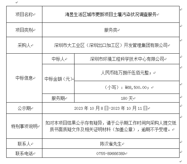 海昱生活区城市更新项目土壤污染状况调查服务中标结果公示