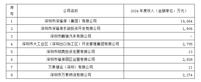 本项目包含集团范围内8家公司〔深圳市678体育(集团)限公司(含分公司)、深圳市万乘物流有限公司、深圳市万乘储运有限公司、深圳市园区运营有限公司、深圳市678体育东部投资开发有限公司、深圳市大工业区开发管理有限公司、深圳市鹏驰汽车有限公司、深圳市翔奥投资发展有限公司〕打包服务。2024年度各公司大概的收入情况如下表:
