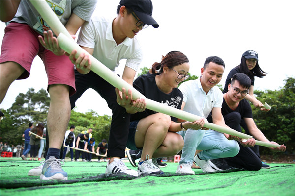 在教官的带领下,队员们参与了破冰游戏、高空天使之手、千里接水、动力圈等项目。从最初的破冰游戏开始,随着教官的口号和指令,来自不同公司不同支部的队员们很快打破稍显腼腆的沉默,随即在轻松愉悦的氛围中熟识身边的伙伴;之后,在天使之手环节,面对高空挑战带来的心理和生理双重压力,队员们凭借相互间的帮助和信任,找到合作的默契和自我突破的勇气,最终克服恐惧心理,完成了看似不可能的挑战;最后的千里接水和动力圈环节,考验的是团队的执行能力和合作能力。各组游戏的成绩各有高低,但在教官的鼓励和提示之下,每位队员都体会到在团队工作中,伙伴间协作配合的重要性,以及群体团结的强大力量。