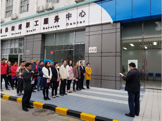 2019年2月22日上午,福保街道职工服务中心在自由港湾公寓首层正式揭牌成立。揭牌仪式由福保街道总工会主席邓堂华主持,福田区人大副主任、总工会主席章海蓉,福田区总工会副主席刘东升,福保街道党工委副书记黎佃,678体育集团党委副书记、纪委书记、工会主席陈健参加了揭牌仪式。