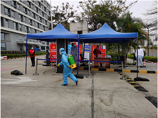 此次疫情防控演习模拟园区门岗执勤保安发现一发烧人员,服务中心立即启动应急预案,有序开展了上报各级防疫部门、做好病患隔离和送医、加强相关区域警戒和全面消毒、通知当事企业立即停工、重新恢复门口正常通行等应急处置环节。演习过程紧张有序,较好达到了预期目的,并获得坪山坑梓安监、派出所及社区疫情防控小组等单位的高度评价。相关单位表示,此次演习体现了生物医药创新产业园区对疫情防控工作的高度重视,整个演习过程组织精心,各个环节响应快速,实战性较强,体现了园区疫情防控工作扎实、细致。