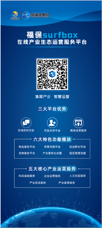 “福保surfbox平台是678体育集团为满足园区企业服务需求,利用云计算、大数据、物联网、移动互联网等新一代信息技术,重磅打造的“智慧化线上产业生态运营服务平台”,具有在线即时互动、精准运营服务以及开放共享三大优势。平台具备供需对接、物业服务、招商服务、创业孵化、产业服务、园区智慧党建等功能模块,重点推出科技金融服务、产业政策服务、企业运营服务、产业促进服务、人文社区服务五大服务内容,通过集聚产业运营服务资源,为园区企业和周边片区企业提供覆盖全生命周期的一站式服务。