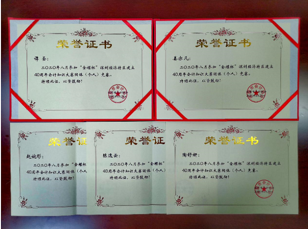 此外,进一步调动集团财会人员持续学习专业理论知识的积极性,不断提升业务能力集团预算财务部组成代表队参加了深圳市会计协会金蝶软件(中国)有限公司共同举办的深圳经济特区建立40周年“金蝶杯”会计知识大赛团体(个人)竞赛通过参赛集团财务人员进一步加强财会理论知识学习拓展了会计知识视野,有力推动了集团财务队伍建设为集团发展提供更坚实的财务保障