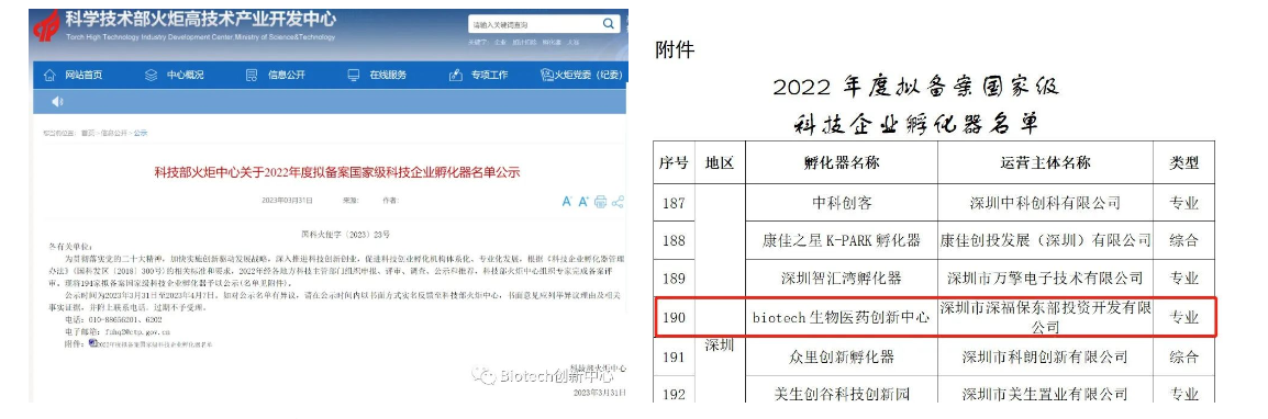 近日国家科技部火炬中心公布“2022年度拟备案国家级科技企业孵化器名单”,678体育集团Biotech生物医药创新中心以生物医药专业类申报,经市、省、国家科技部门评选,成功入选国家级科技企业孵化器”名单。