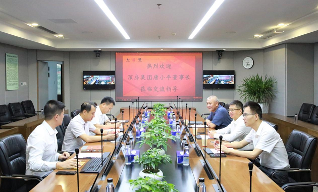 近日,深房集团董事长兼总经理唐小平、副总经理张宏伟带领开发相关人员到访集团,双方商谈海昱生活区城市更新项目合作事宜。谢涛董事长、王昌栋总经理接待并对唐小平董事长一行的到来表示热烈欢迎。