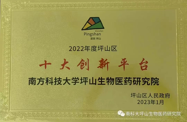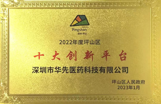 “十大创新平台”荣誉称号(4家):深圳市华先医药科技有限公司、安领生物医药(深圳)有限公司(中科院上海药物研究所华南安评中心)、深圳市健元医药科技有限公司、南方科技大学坪山生物医药研究院;
