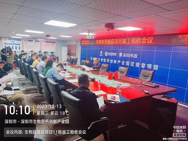 2023年1213日,经市住建局现场竣工核验,参建单位五方现场验收,生物医药创新产业园区提容项目11栋顺利通过竣工验收,较计划提前18天完成,为项目2024年招商运营工作抢得了先机。