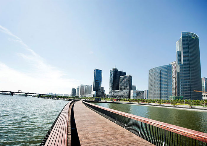 彩带岛作为中心商务区的大型景观工程,北起月亮岛沿海河南至安阳道,全长1.66公里,总面积约24万平方米,是政府投资达4亿元的重要景观工程项目。MIG金融大厦毗邻彩带岛,亲水平台、音乐喷泉、观海大台阶等重要景观节点为进驻企业提供良好的办公环境。